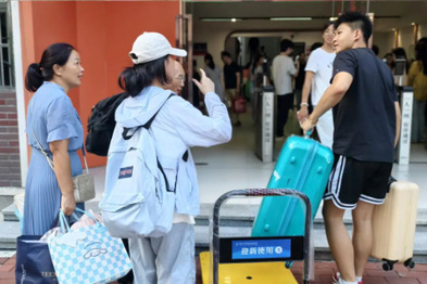 从学院咨询点到宿舍楼,下那一抹抹忙碌又热情的身影,正是学院的老师们,他们坐镇咨询台,化身“专业导航仪”。新来的付同学和王同学也大方言道“我们是第一届新生,我们也可以成为自己的学长学姐!”。手提肩扛,穿梭如鱼。他们化解每位学子初来乍到的陌生与不安、物资准备、专业解答、合搬行李,每个人都在勤勉工作,以最大的诚意迎接新生的到来。