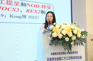 刘宏星副研究员就“泥蚶鳃组织共生菌的鉴定及功能研究”进行了报告。研究发现了一种泥蚶鳃细胞中共生的螺旋菌,揭示了该共生螺旋菌在铁离子运输和叶酸合成过程的功能潜力,为深入解析泥蚶红细胞生成的分子机制提供了新的理论依据。