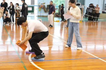 在“摸石头过河”比赛中,老师们手拿“石头”,动作敏捷而迅速,步步为营,力争以最快的速度“渡河”。这既考验个人的技巧与体力,也展现出团队协作的重要性!