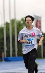 5公里被誉为“径赛史上的皇冠明珠”,是对运动员耐力和毅力的严峻考验。在本次比赛里,徐同学与一众实力强劲的选手同台竞技,在比赛后程体力不支,落入最后一名。然而,即便步履沉重、摆腿已十分艰难,徐同学依旧咬牙坚持,迎着看台上同学们的击鼓声与助威声,最终顺利完赛。他表示,同学们为他的加油助威是支撑他坚持完赛的最大动力。“每次跑过看台,都能听到同学们为我加油呐喊。虽然说跑的不快,这次是最后一名,但是听到他们(为我加油)还是很开心和感动的。”