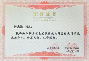 近期,宁波市委、市政府组织开展了2025年度加快高质量发展推动共同富裕先行示范先进集体和个人评选活动,我院陈忠法教授获评先进个人。